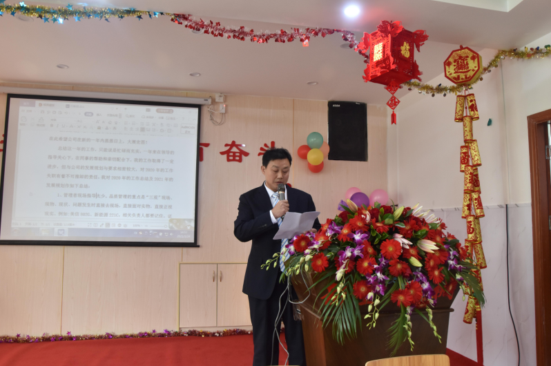東莞市新望包裝機(jī)械有限公司2020年年度總結(jié)大會(huì)于2021年1月24日下午14:30在公司食堂隆重舉行。年終會(huì)議由行政部經(jīng)理張麗君主持。公司黨支部書記潘婉荷對(duì)黨支部成立5年以來(lái)的黨員活動(dòng)和黨建工作做了匯報(bào)和總結(jié)。公司運(yùn)營(yíng)管理中心和技術(shù)創(chuàng)新服務(wù)中心兩套班子成員緊靠大會(huì)主題“征途漫漫,惟有奮斗”進(jìn)行總結(jié)與探討,盤點(diǎn)過(guò)往成績(jī)與不足,為公司2021年戰(zhàn)略規(guī)劃獻(xiàn)計(jì)獻(xiàn)策,常委班子成員都發(fā)表了熱情洋溢的講話。公司總經(jīng)理羅永輝做了《前程無(wú)坦途 唯有奮起爭(zhēng)》的年度工作報(bào)告。